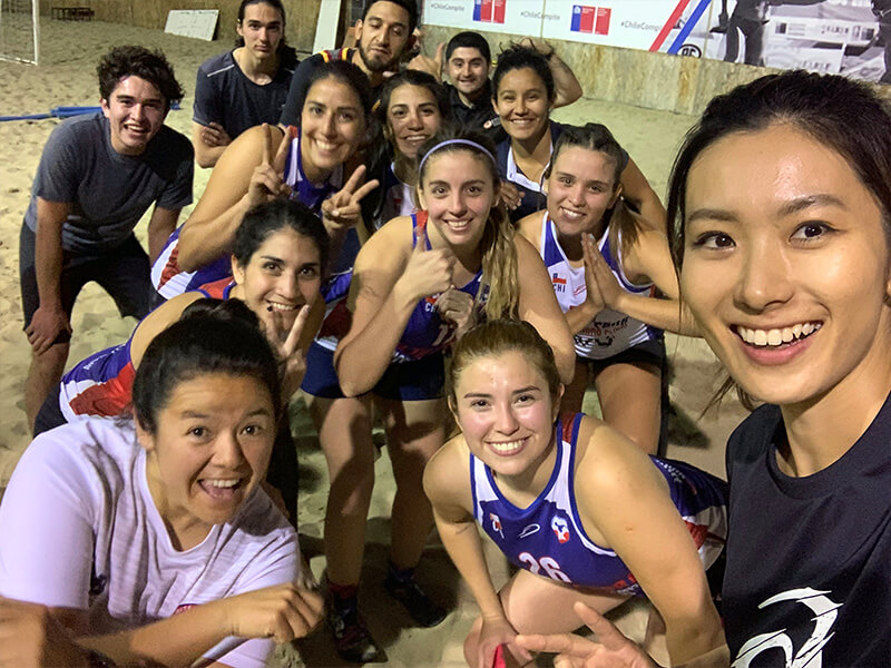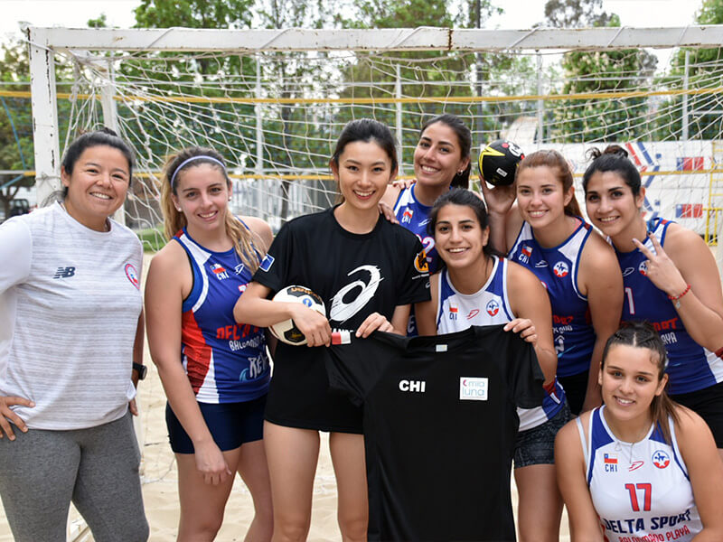 日本ハンドボール協会公認ビーチハンドボールアンバサダーとして、ビーチハンドボールチリ女子代表チームを表敬訪問し、女子ビーチハンドボール・チリ代表に日本から持ってきたメッセージハンドボールをプレゼントしてきました。
