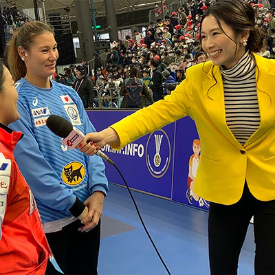 日本ハンドボールリーグプレーオフ、日韓定期戦、JAPAN CUP、アジア女子ハンドボール選手権などで、中継リポーターやハンドボール番組のコメンテーターなどを務める