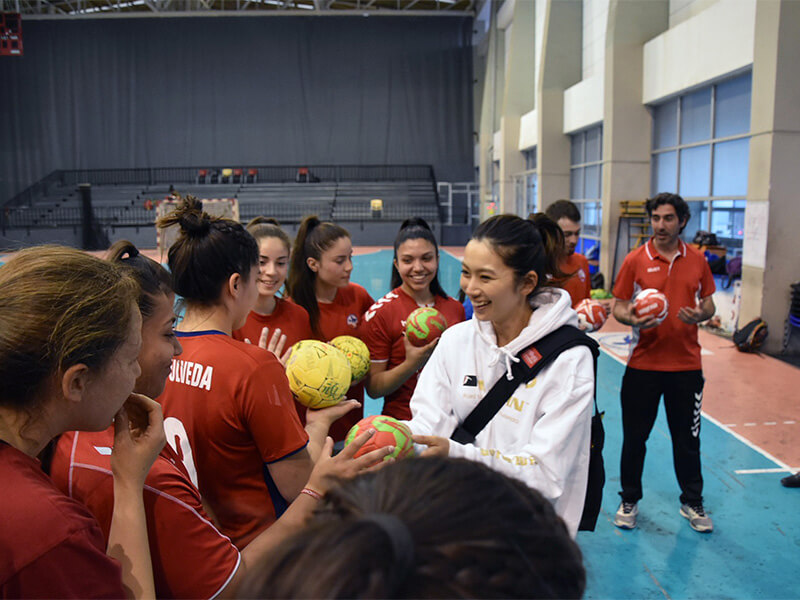 日本ハンドボール協会公認ビーチハンドボールアンバサダーとして、ビーチハンドボールチリ女子代表チームを表敬訪問し、女子ビーチハンドボール・チリ代表に日本から持ってきたメッセージハンドボールをプレゼントしてきました。